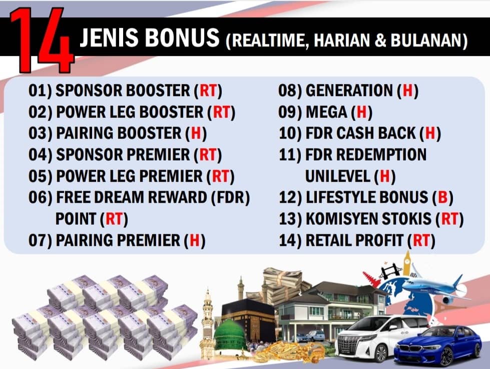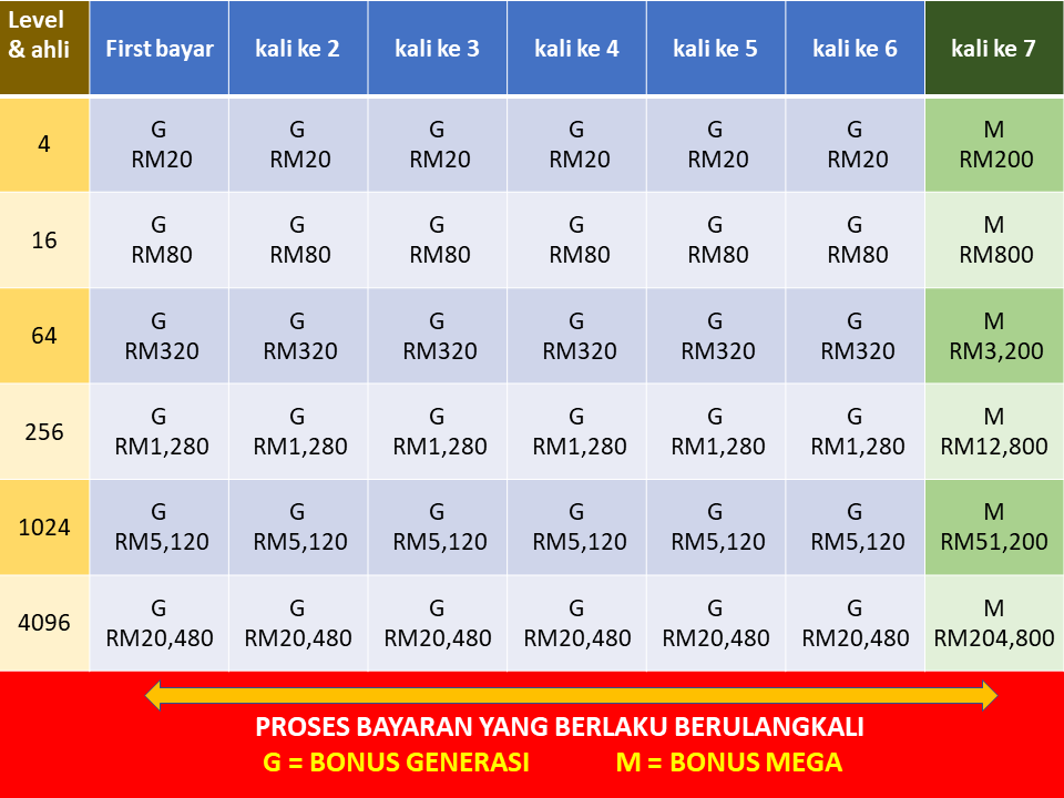 - Mega (RM50) – bila ahli bawah anda bayar komitmen ke-7.